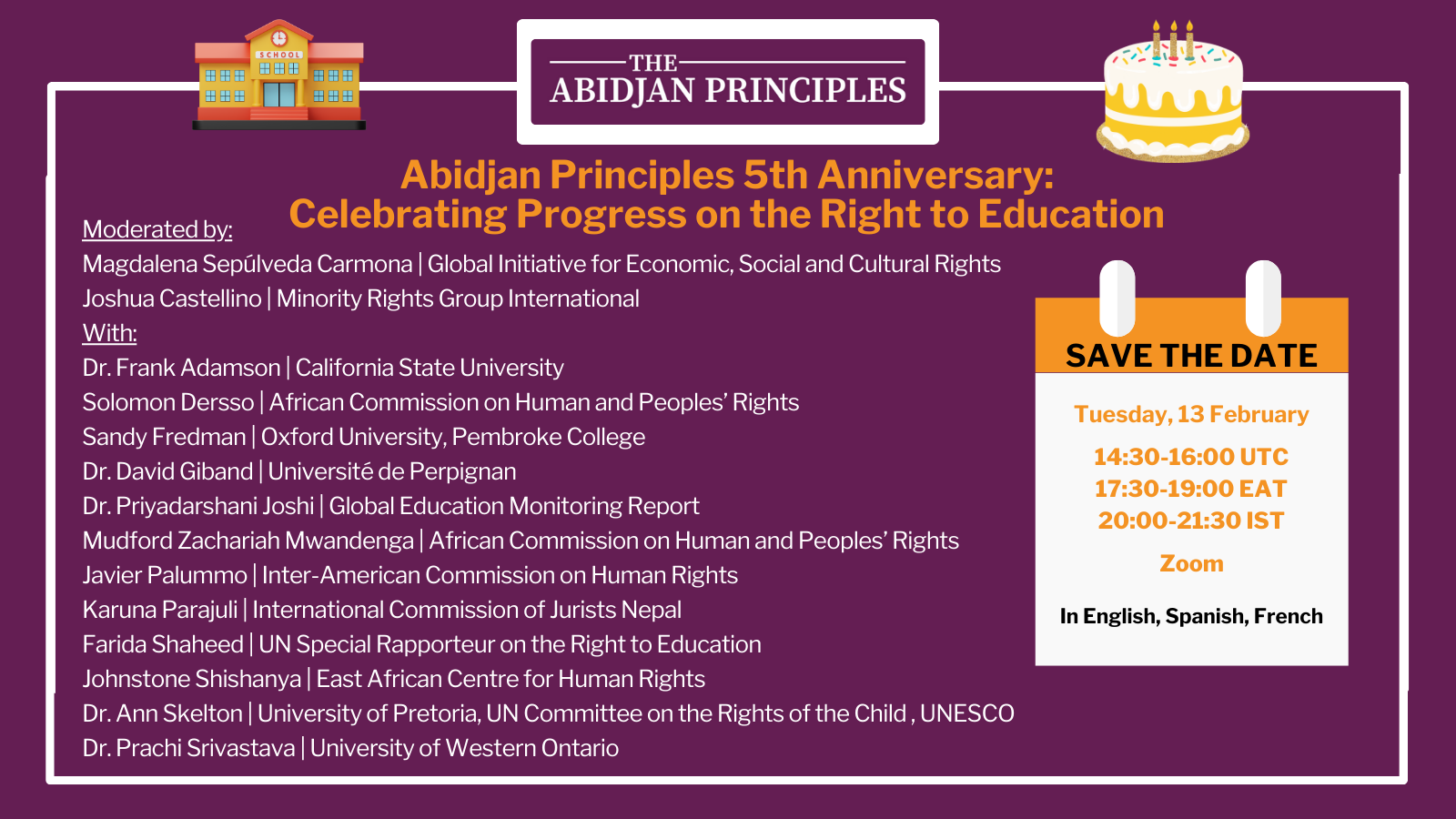 Únase a nosotros en un seminario web participativo en línea el 13 de febrero en el que un grupo diverso de partes interesadas en la educación, incluidos Estados, representantes de la UNESCO, académicos y organizaciones de la sociedad civil, invitan a todas las partes interesadas a unirse a este evento y reflexionar sobre dónde nos encontramos hoy en día con respecto a la realización del derecho a la educación.